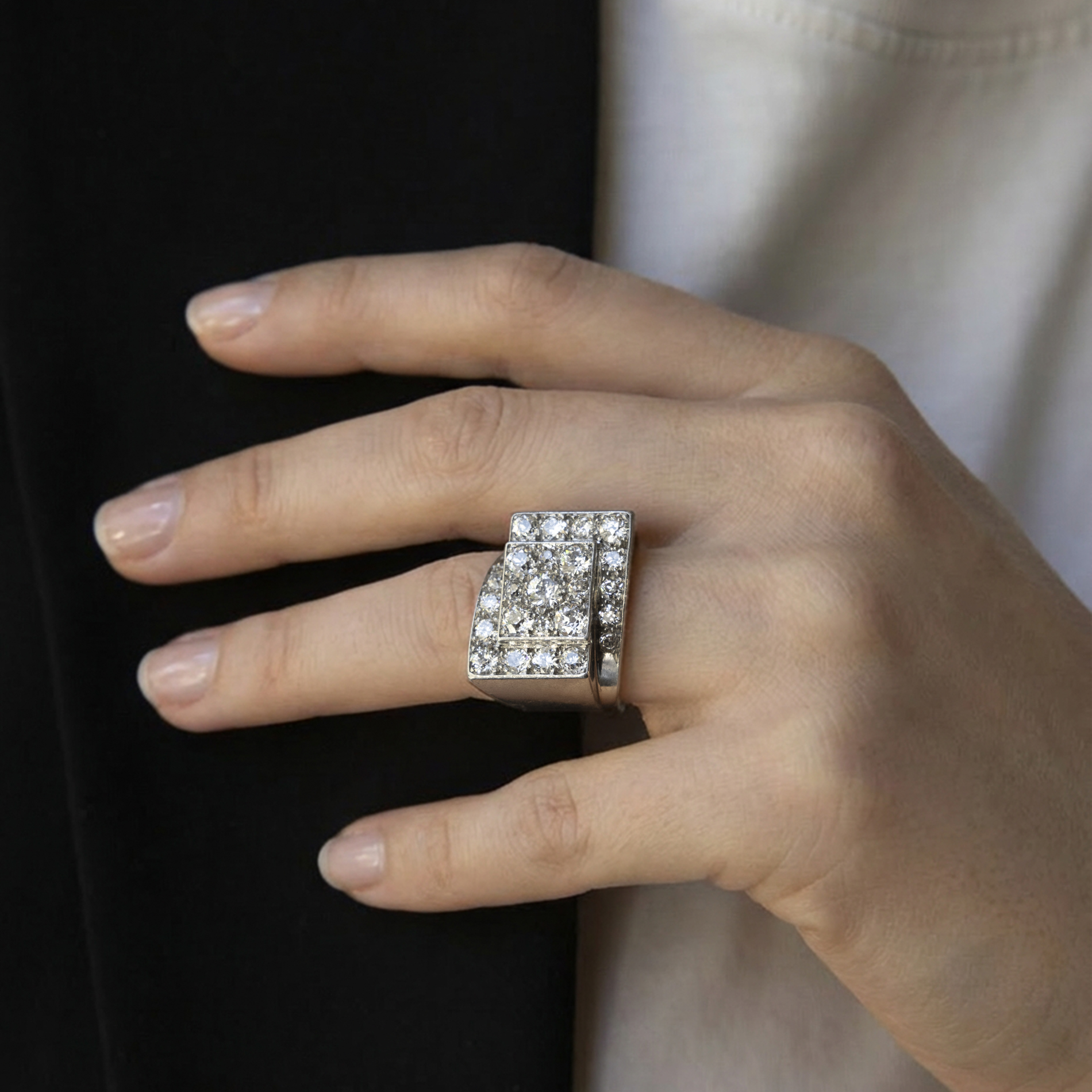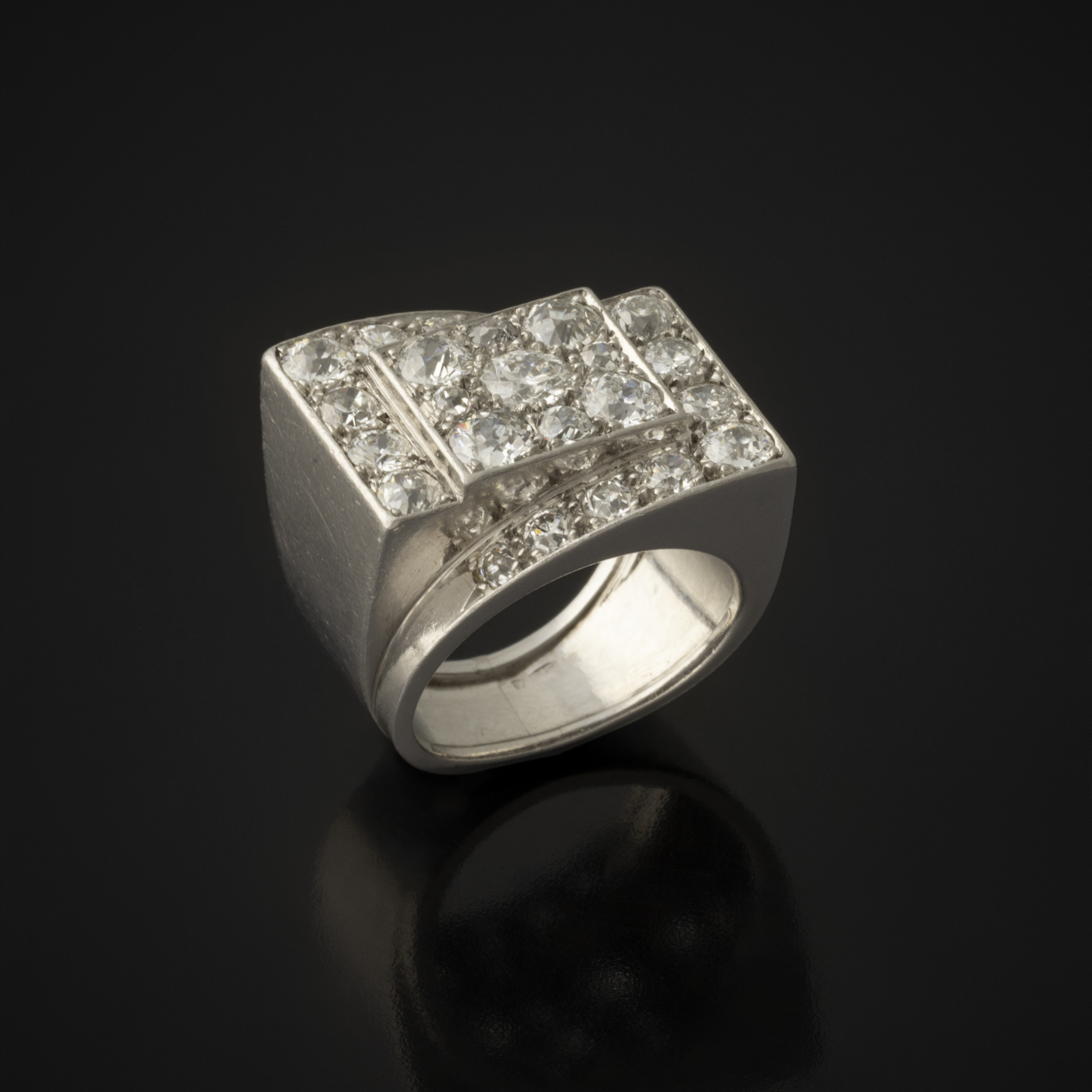 Géometric Ring Platinum and diamond ring. Year : Circa 1930 Materials : Platinum and diamond Finger size : 5 3/4 Weight : 16.86 g Price on demand Ask a question CommentsThis field is for validation purposes and should be left unchanged.Ask a question I want to know more First Name*Last Name*E-mail* Sélection de la créationThis field is hidden when viewing the formAdresse vers la création Your messagePrivacy Policy (GDPR)* I accept the privacy policy.The content of the form is stored on this site in order to be able to establish an exchange with you. On simple request the data can be deleted. Please visit this dedicated page for more details. Δ