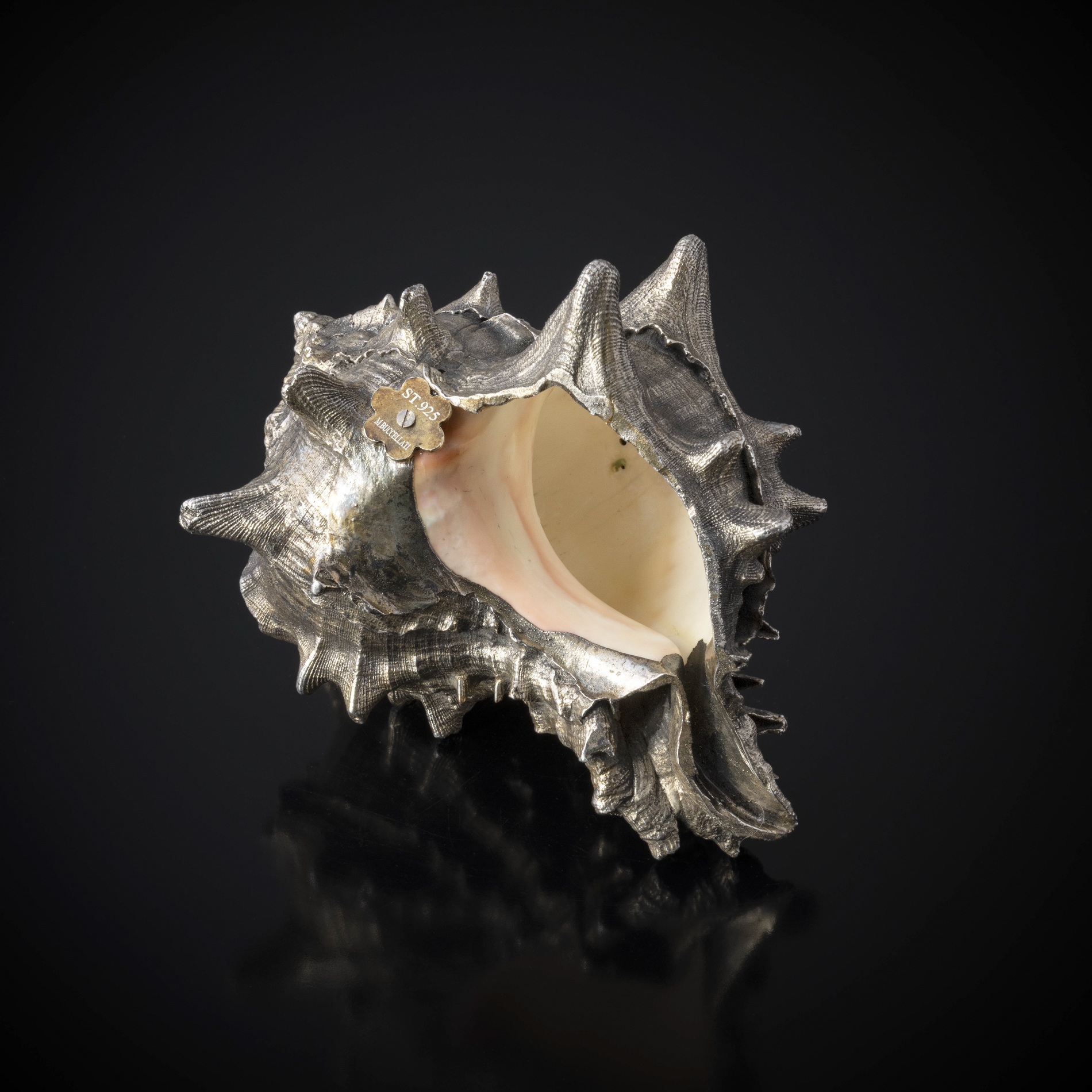 BUCCELLATI Shell Shell covered in silver. Signed. Year : Circa 1970 Materials : Sheel, silver Weight : 290.67 g Dimensions (cm) : 11 x 11 x 9 (L x W xH) Price on demand Ask a question FacebookThis field is for validation purposes and should be left unchanged.Ask a question I want to know more First Name*Last Name*E-mail* Sélection de la créationThis field is hidden when viewing the formAdresse vers la création Your messagePrivacy Policy (GDPR)* I accept the privacy policy.The content of the form is stored on this site in order to be able to establish an exchange with you. On simple request the data can be deleted. Please visit this dedicated page for more details. Δ