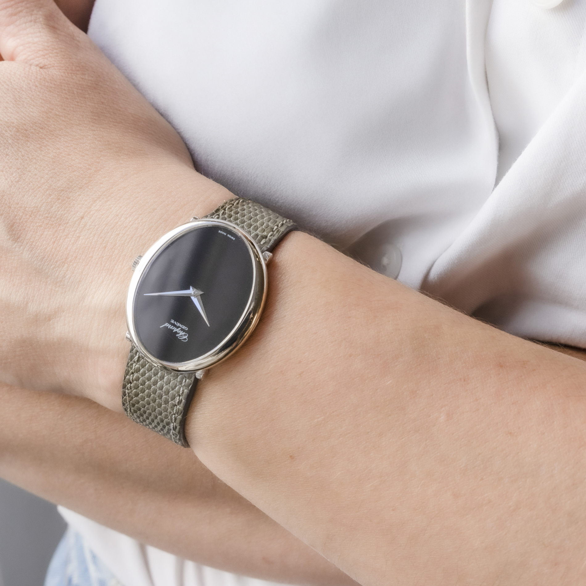 Ellipse watch in white gold, signed and numbered. Cartier gold folding clasp.