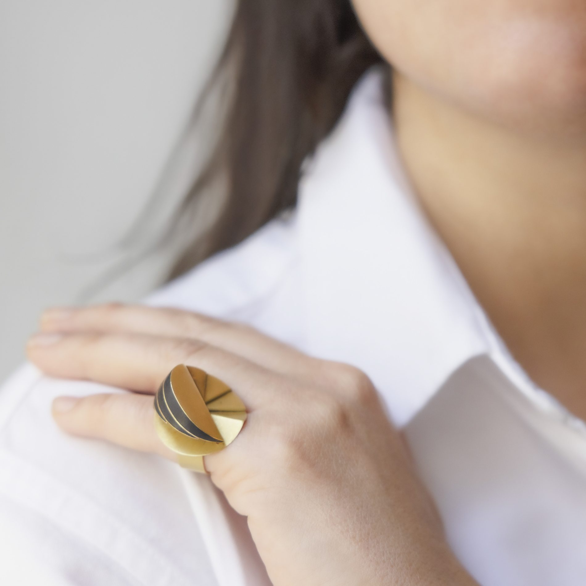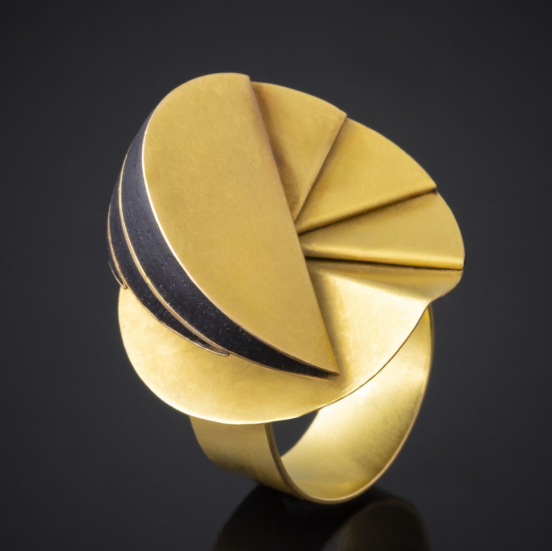 Bague en or et bois. Monogrammé AB et numéroté 11/83 (novembre 83 ).