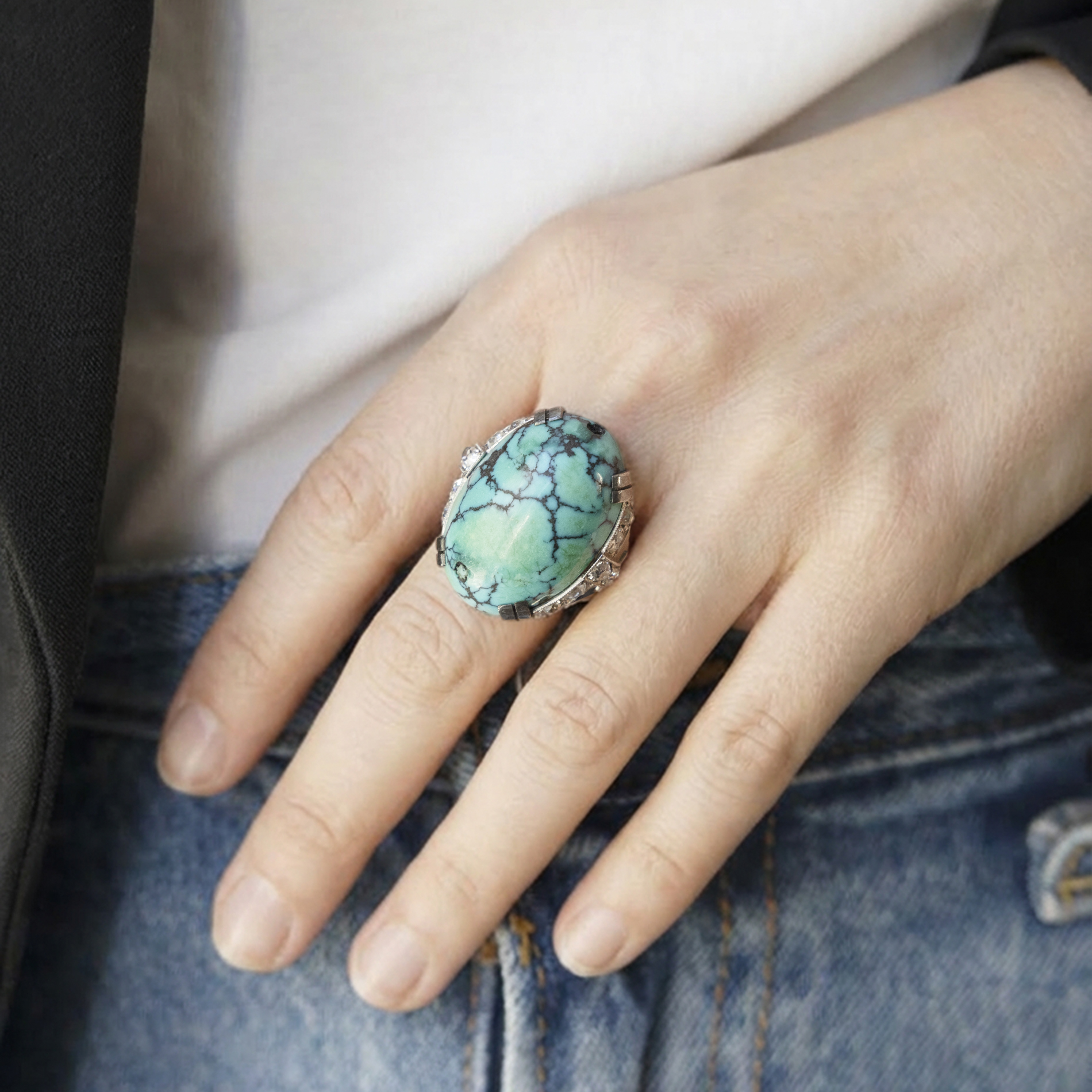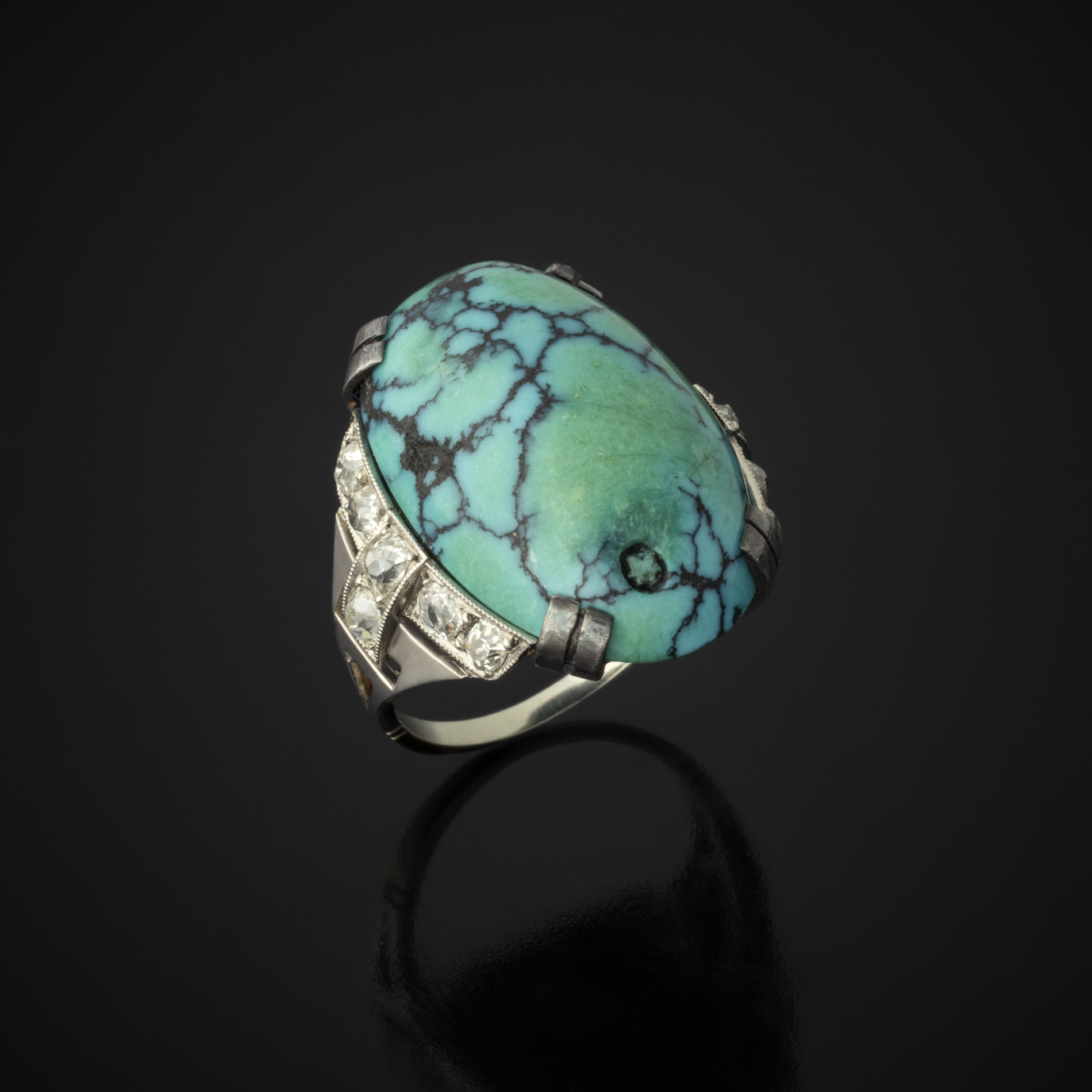 Matériaux : Or gris, platine, turquoise et diamants