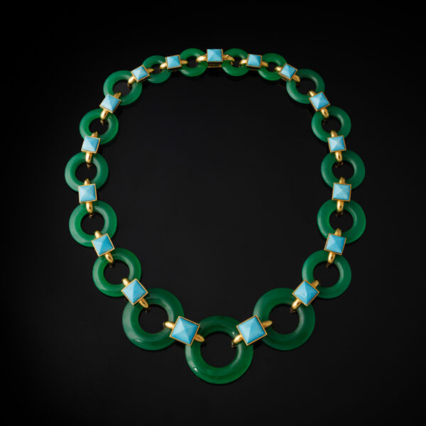ALDO CIPULLO Collier Collier en or, chrysoprases et turquoises. Signé. Année : Vers 1970 Matériaux : Or, chrysoprases et turquoises Poids : 176.88 g Dimensions (cm) : 55 x x (L x l x H) Prix sur demande Poser une question Poser une question Je souhaite en savoir plus Prénom*Nom*E-mail* Sélection de la créationCe champ est masqué lorsque l‘on voit le formulaire.Adresse vers la création Votre messagePolitique de confidentialité (RGPD)* J’accepte la politique de confidentialité.Le contenu du formulaire est seulement stocké sur ce site afin de pouvoir établir un échange avec vous. Sur simple demande les données peuvent être supprimées. Merci de vous rendre sur cette page dédiée pour plus de détail.EmailCe champ n’est utilisé qu’à des fins de validation et devrait rester inchangé. Δ