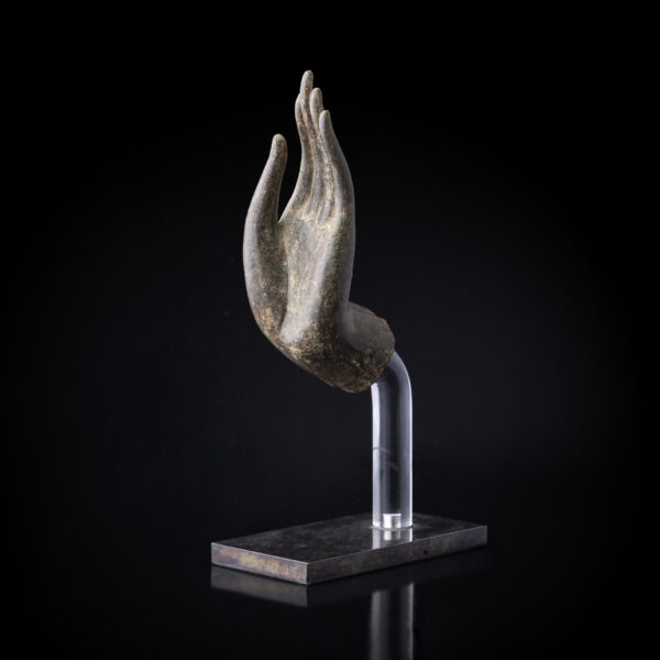 Main – bronze patiné – Thaïlande XIXème siècle – sur un socle acier patine canon de fusil et plexiglass.