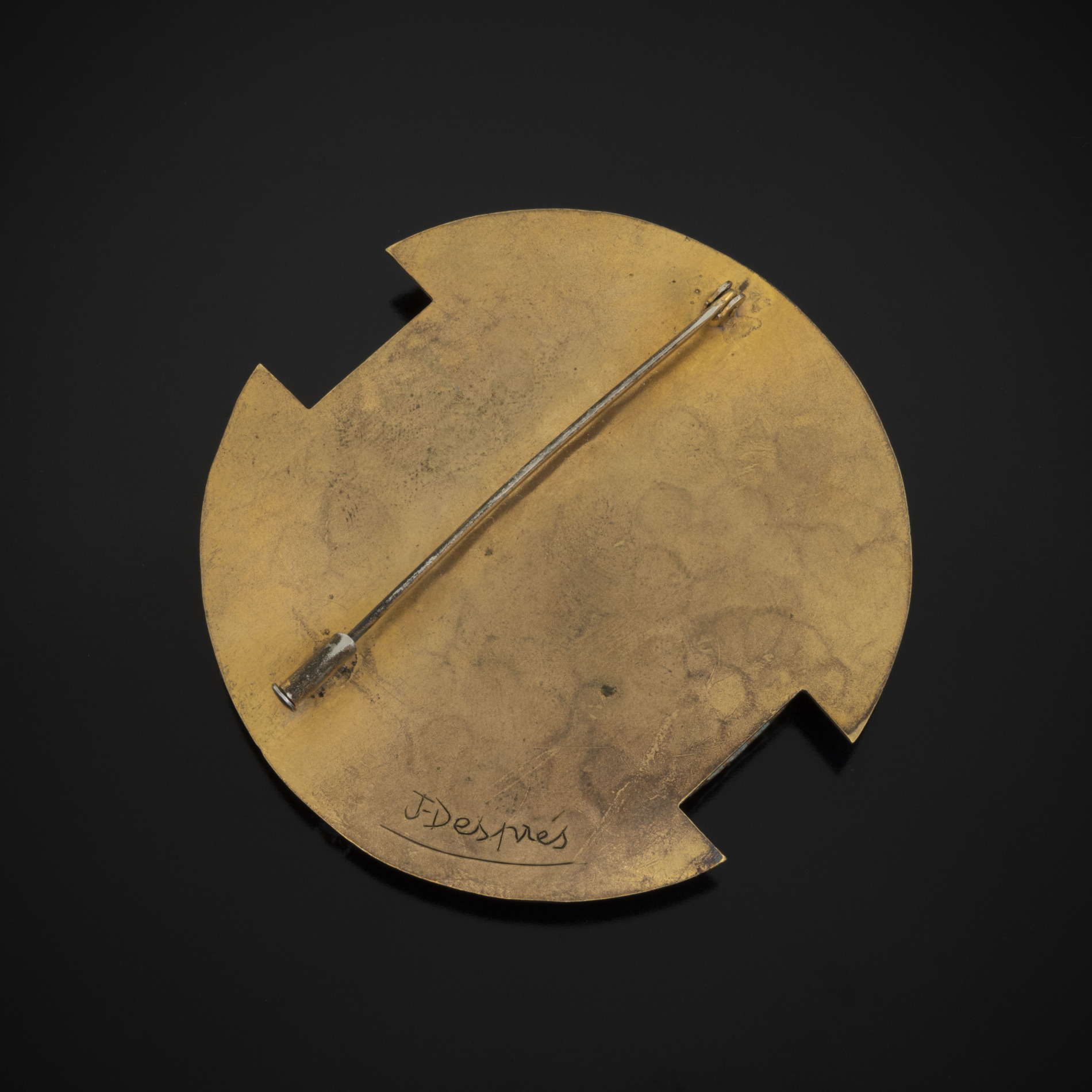 JEAN DESPRÉS Broche Bronze Broche en bronze. Signée au dos. Année : Vers 1930 Matériaux : Bronze Diamètre : 6,5 cm Poids : 39.56 g Prix sur demande Poser une question FacebookCe champ n’est utilisé qu’à des fins de validation et devrait rester inchangé.Poser une question Je souhaite en savoir plus Prénom*Nom*E-mail* Sélection de la créationCe champ est masqué lorsque l‘on voit le formulaire.Adresse vers la création Votre messagePolitique de confidentialité (RGPD)* J’accepte la politique de confidentialité.Le contenu du formulaire est seulement stocké sur ce site afin de pouvoir établir un échange avec vous. Sur simple demande les données peuvent être supprimées. Merci de vous rendre sur cette page dédiée pour plus de détail. Δ