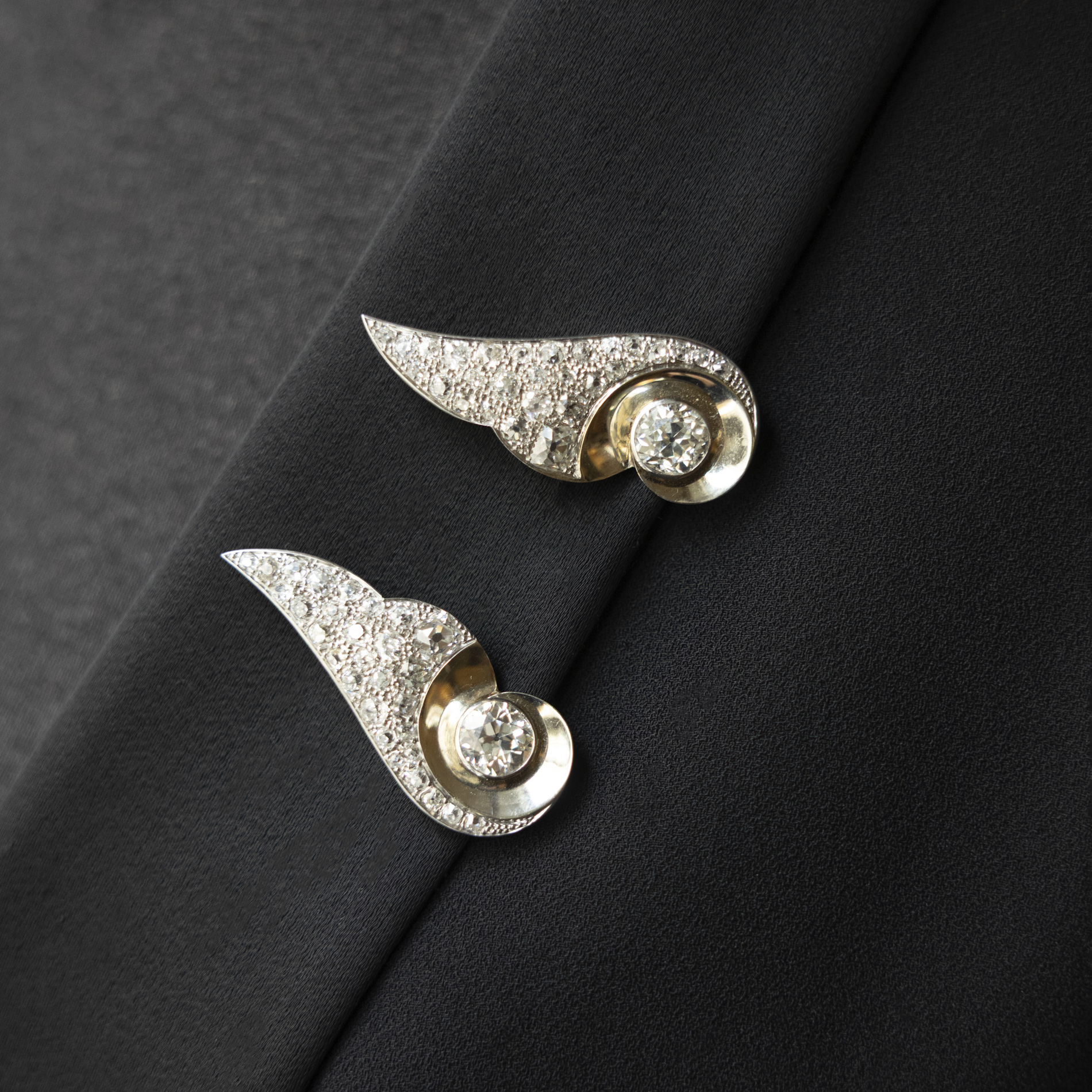 Paire de clips de revers en or, platine diamants (environ 2,75 carats chaque diamants central).