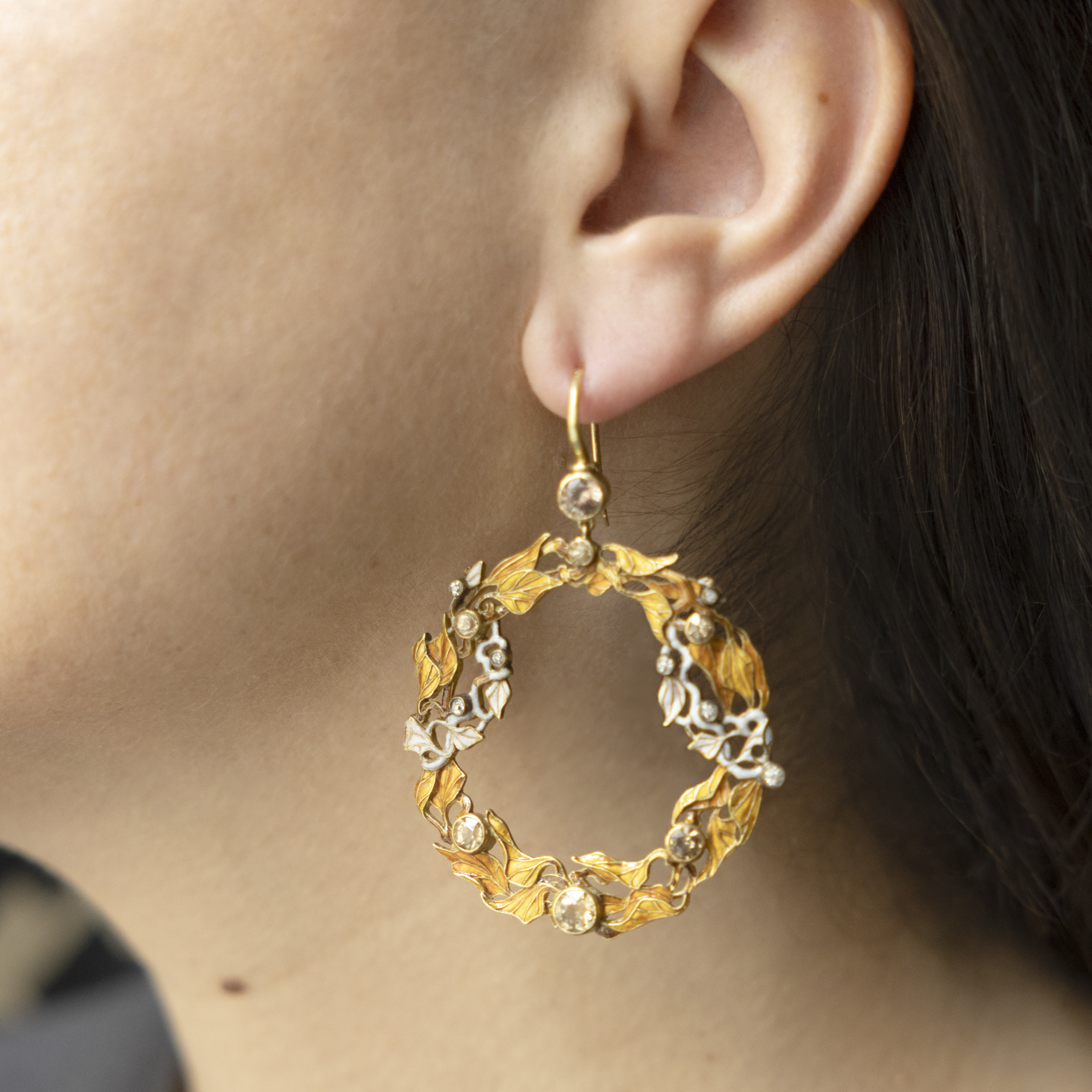 Paire de Créoles Paire de créoles en or, émail et diamants. Année : Vers 1900 Matériaux : Or, émail et diamants Poids : 33.46 g Prix sur demande Poser une question CommentsCe champ n’est utilisé qu’à des fins de validation et devrait rester inchangé.Poser une question Je souhaite en savoir plus Prénom*Nom*E-mail* Sélection de la créationCe champ est masqué lorsque l‘on voit le formulaire.Adresse vers la création Votre messagePolitique de confidentialité (RGPD)* J’accepte la politique de confidentialité.Le contenu du formulaire est seulement stocké sur ce site afin de pouvoir établir un échange avec vous. Sur simple demande les données peuvent être supprimées. Merci de vous rendre sur cette page dédiée pour plus de détail. Δ