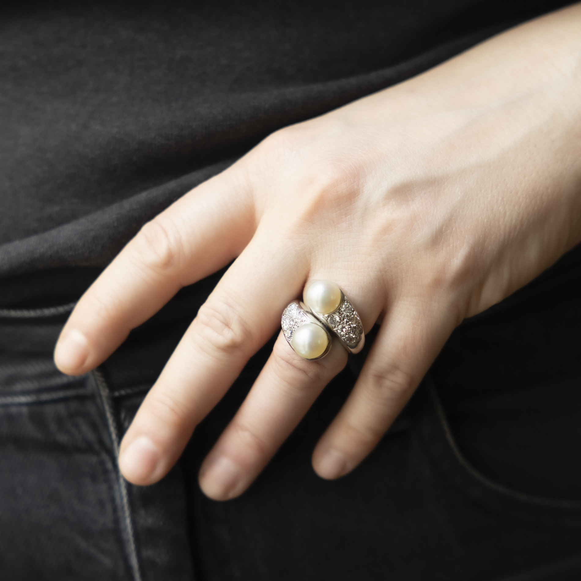 SUZANNE BELPERRON Bague Ying Yang Bague Ying Yang en platine, diamants et perles de culture. Année : Juin 1964 Certificat : Olivier Baroin Matériaux : Platine, diamants et perles de culture Tour de doigt : 52 Poids : 17.45 g Prix sur demande Poser une question URLCe champ n’est utilisé qu’à des fins de validation et devrait rester inchangé.Poser une question Je souhaite en savoir plus Prénom*Nom*E-mail* Sélection de la créationCe champ est masqué lorsque l‘on voit le formulaire.Adresse vers la création Votre messagePolitique de confidentialité (RGPD)* J’accepte la politique de confidentialité.Le contenu du formulaire est seulement stocké sur ce site afin de pouvoir établir un échange avec vous. Sur simple demande les données peuvent être supprimées. Merci de vous rendre sur cette page dédiée pour plus de détail. Δ