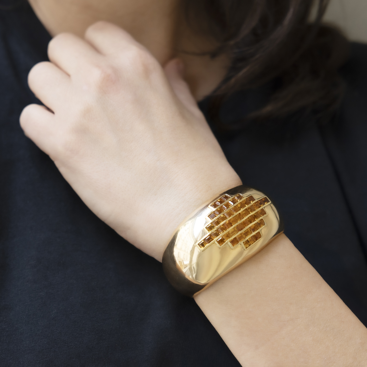 SUZANNE BELPERRON Bracelet Tranche Bracelet Manchette Tranche en or et citrines. Année : Vers 1940 Matériaux : Or et citrines Poids : 42.60 g Prix sur demande Poser une question PhoneCe champ n’est utilisé qu’à des fins de validation et devrait rester inchangé.Poser une question Je souhaite en savoir plus Prénom*Nom*E-mail* Sélection de la créationCe champ est masqué lorsque l‘on voit le formulaire.Adresse vers la création Votre messagePolitique de confidentialité (RGPD)* J’accepte la politique de confidentialité.Le contenu du formulaire est seulement stocké sur ce site afin de pouvoir établir un échange avec vous. Sur simple demande les données peuvent être supprimées. Merci de vous rendre sur cette page dédiée pour plus de détail. Δ